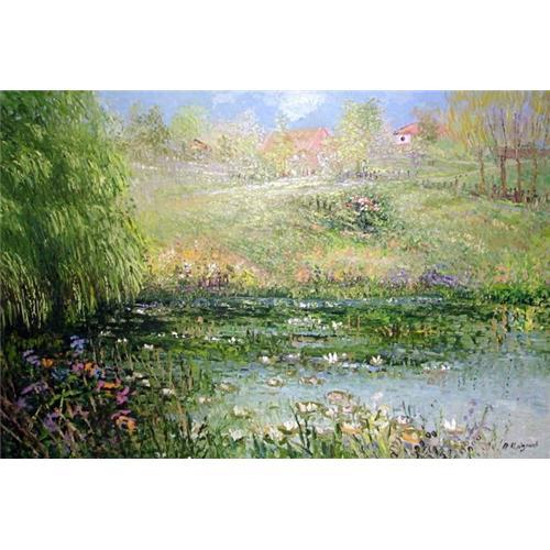 "LAKE SCENE " ORIGINAL OIL PAINTING by WELL LISTED ARTIST RADIK ATOYAN