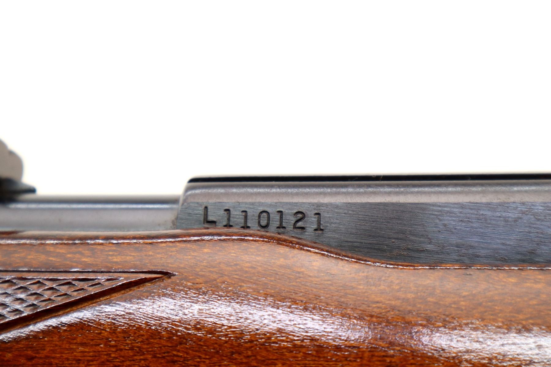 Main Description: Blade front sight, adjustable u notched rear sight, blued finish, grooved receiver. One piece wood stock, checkered forearm, pistol grip and black polymer butt plate. Raised comb