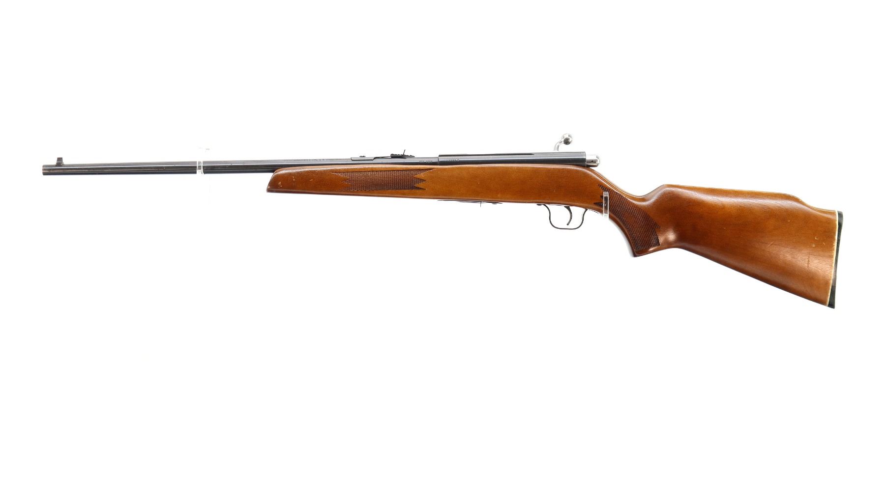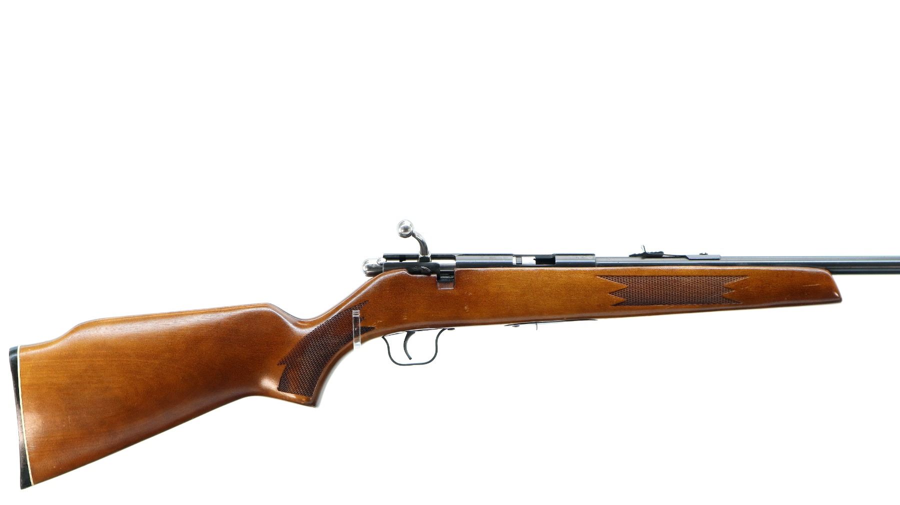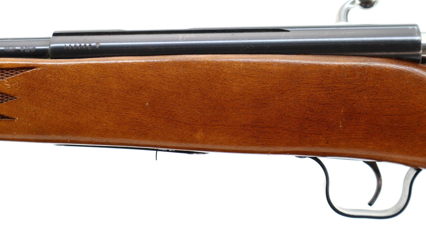 Main Description: Blade front sight, adjustable u notched rear sight, blued finish, grooved receiver, includes incorrect bolt from a different firearm does not function. One piece wood stock, checkered forearm and pistol grip, cheek rest, grooved black polymer butt plate.