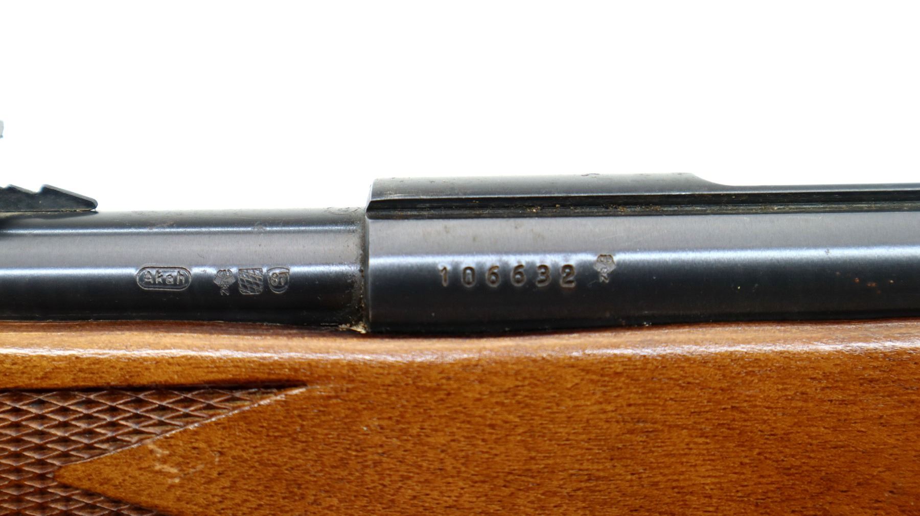 Wear: Metal finish shows some light rust speckles, scratches, handling marks and wear. Stock shows some marks, scratches and wear.