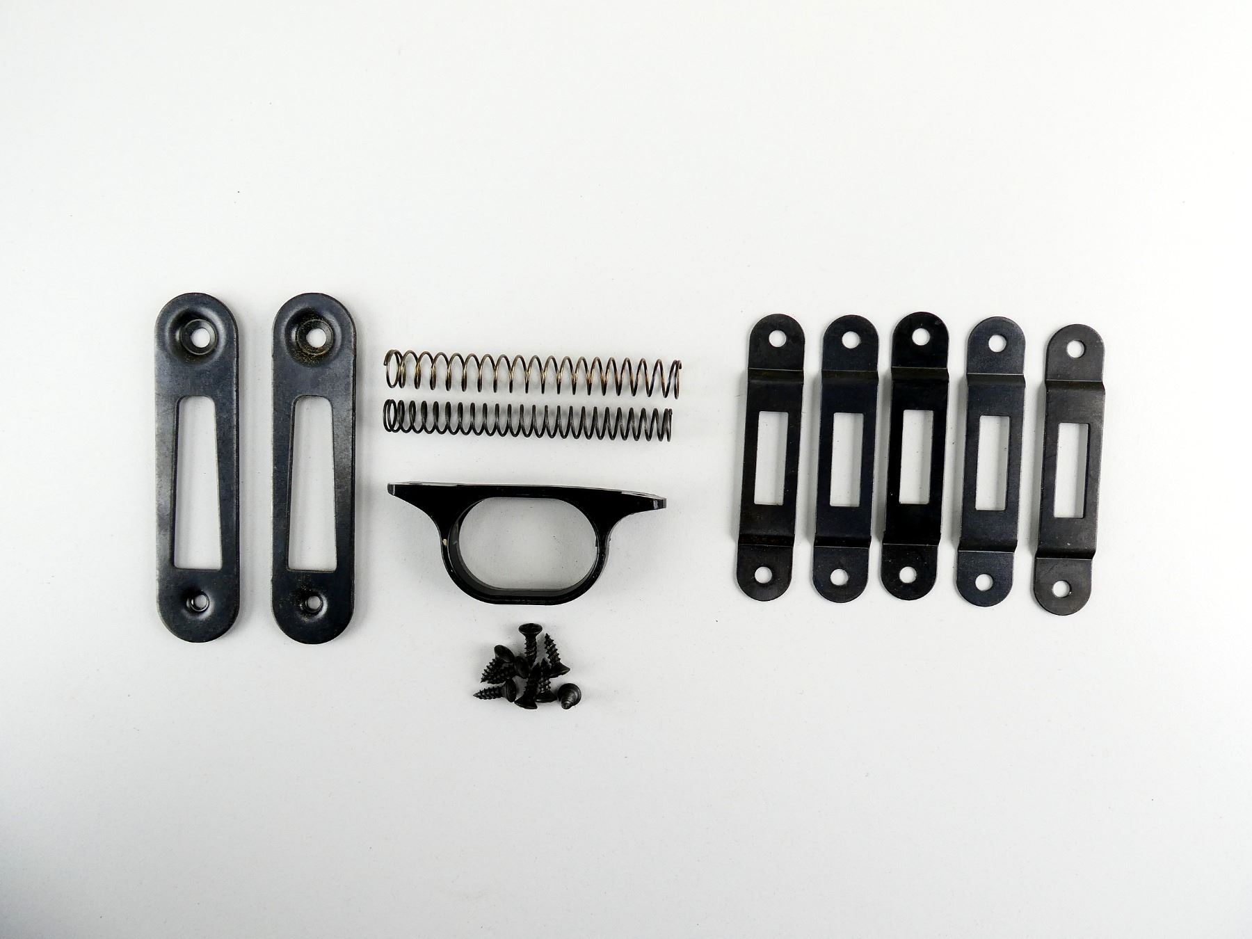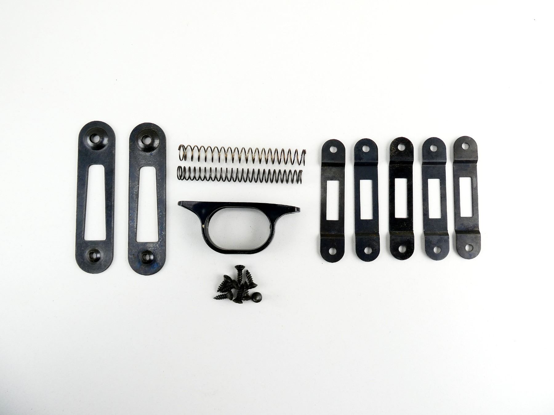 LOT INCLUDES; BLACK POLYMER TRIGGER GUARD, (2) MAGAZINE FLOOR PLAT, (8) SCREWS, (5) TRIGGER GUARD SPACERS, ETC. MAY REQUIRE FITTING. SEE PHOTOS.