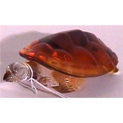 LALIQUE AMBER TO CLEAR ART GLASS FIGURE OF A TURTLE, "Caroline", signed in script "Lalique, France"; 5-1/2 inch length
