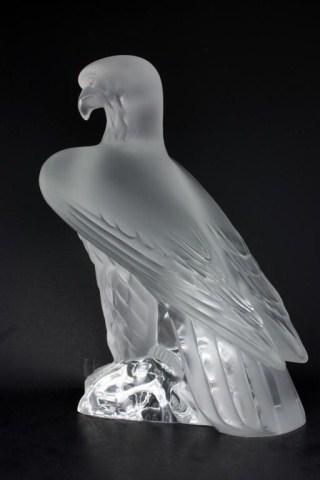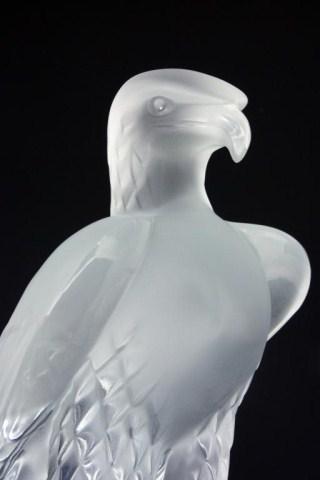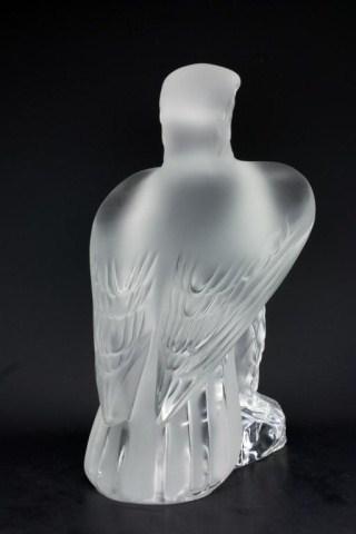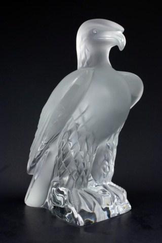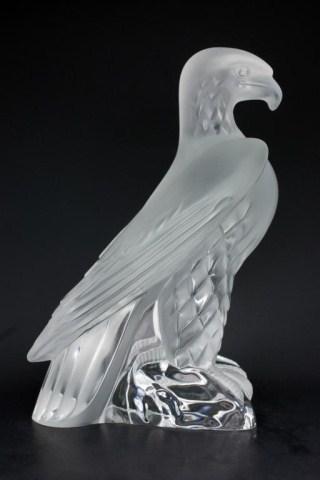 Lalique France Crystal Eagle figure. Titled "Liberte". Designed by Marc Lalique (1900-1977) in 1975. Signed under base. Measures 9" height. Has a retail value of $1,900.00. Discontinued. If available today, this piece would have a much higher retail.