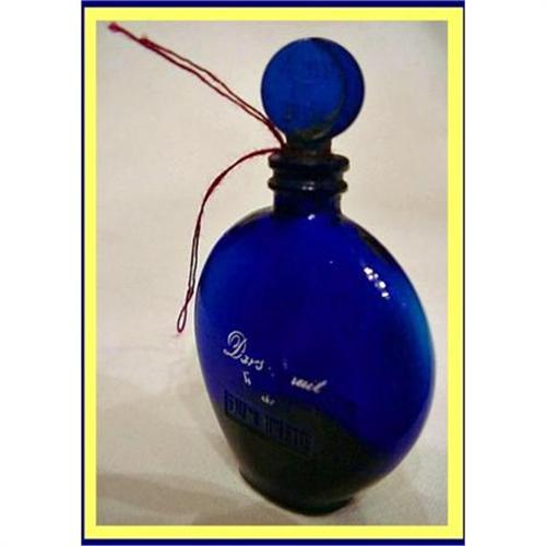 Cobalt blue glass bottle and stopper. The stopper moulded with a chevron design and embossed DANS LA NUIT.