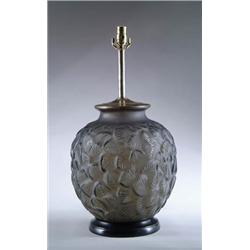 Lot 435 LALIQUE LAMP BASE Monumental sized Lalique lamp base in Charmille pattern and smoke glass color. Unsigned. SIZE: Glass portion 14” t. Overall 24” t. CONDITION: Very good to excellent. 5-70529