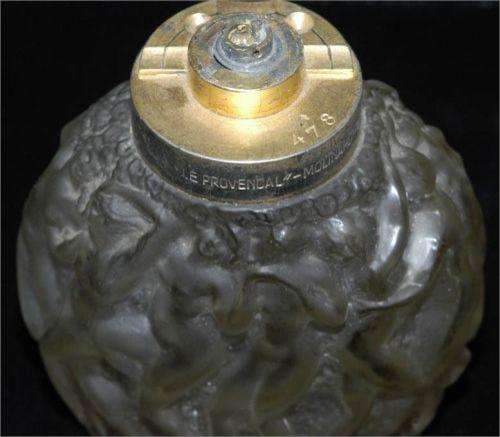 LALIQUE/MOLINARD ATOMIZER, the fittings detached and incomplete, 5 1/4" high, signed "Lalique", PACKING AND SHIPPING (excluding insurance) $20,