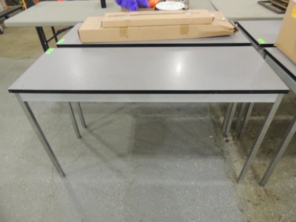 DESK TABLE, OFFICE, SCHOOL LAMINATE TOP METAL FRAME DESK TABLE. GREAT CONDITION AS SHOWN SEE PHOTO FOR MORE DETAILS.