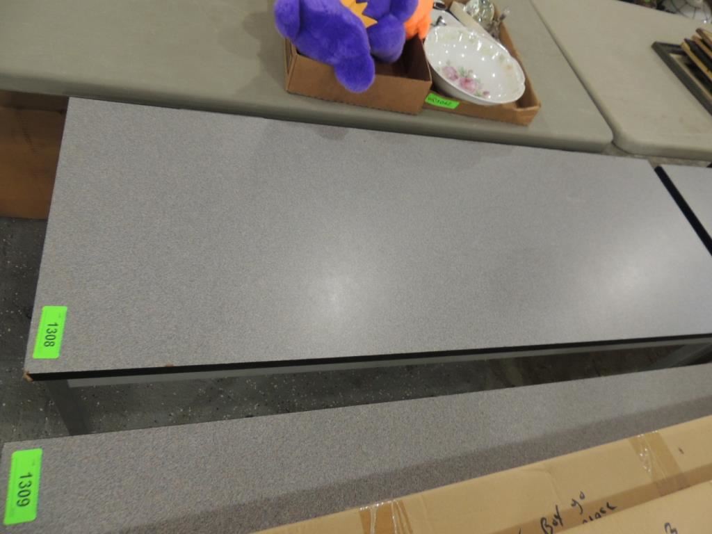 DESK TABLE, OFFICE, SCHOOL LAMINATE TOP METAL FRAME DESK TABLE. GREAT CONDITION AS SHOWN SEE PHOTO FOR MORE DETAILS.