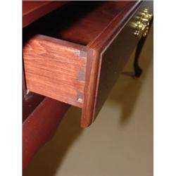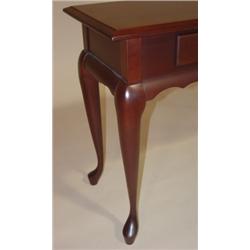 LANCASTER COUNTY QUEEN ANNE STYLE CHERRY CONSOLE TABLE. 2 drawers. Pad feet. Surface scratching is visible to top. 29.5" H, 54" W, 16" D