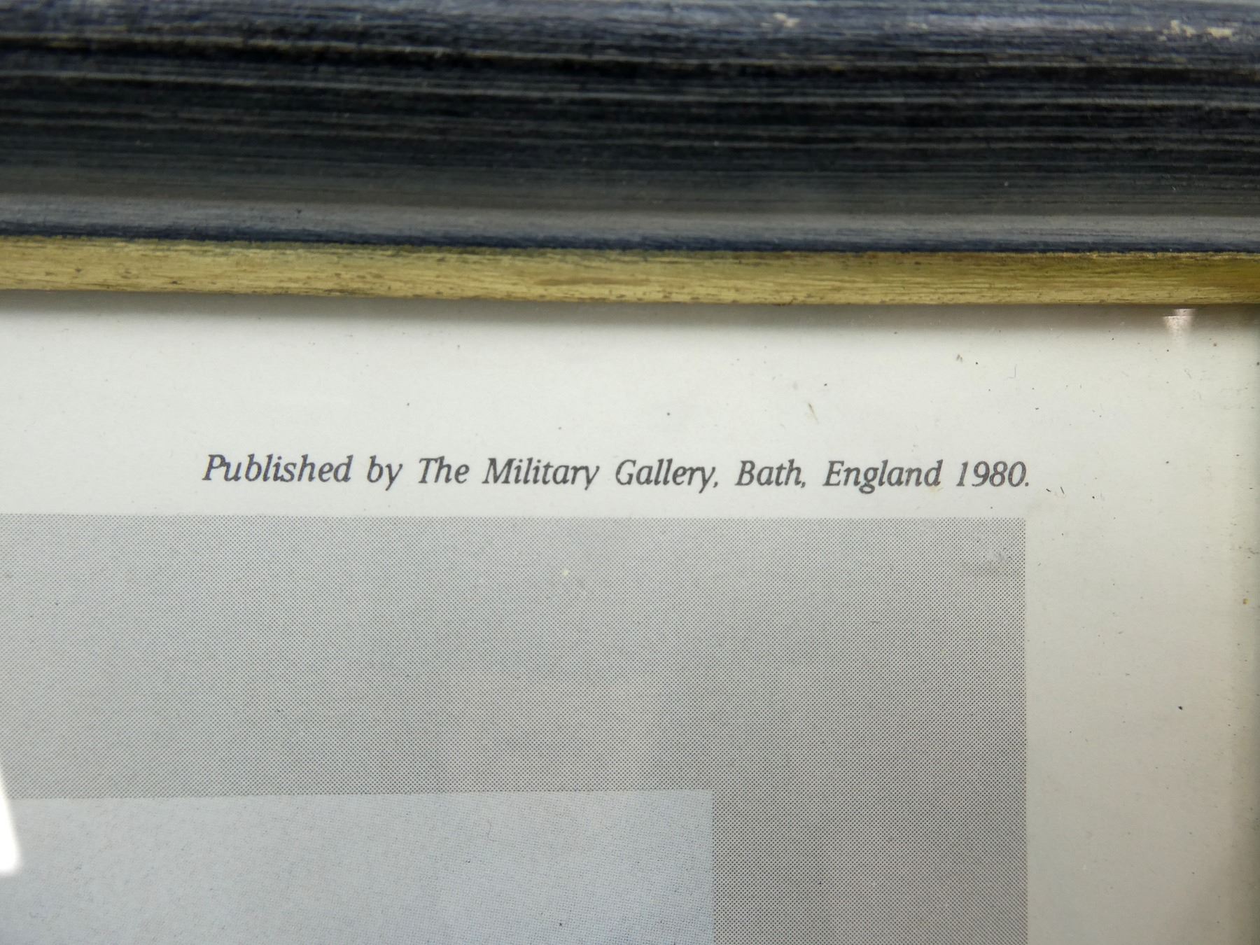 (1) BY ROBERT TAYLOR, PUBLISHED BY THE MILITARY GALLERY, BATH, ENGLAND 1980, WOODEN FRAME, UNDER GLASS & APPROX. 11.5" X 9". SEE PHOTOS. *NO GUARANTEE ON GLASS FOR SHIPPING*