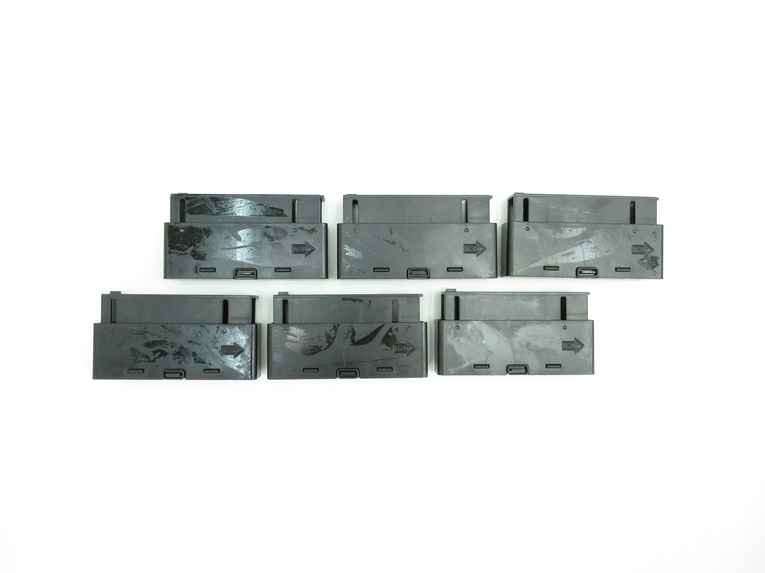 LOT INCLUDES; (6) 6MM AIRSOFT BB, 20 ROUND MAGS, BLACK POLYMER CONSTRUCTION, LOW-CAP, FITS MB06 SNIPER AIRSOFT RIFLES, SPRING LOADED TO ASSIST REMOVING MAGAZINE FROM RIFLE, NOS. SEE PHOTOS.