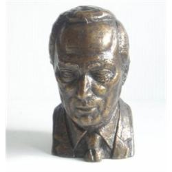Bronze patiné. Signé et daté 2001. Cachet d’atelier du bronze d’art, fondeur. Ce buste est le modèle pour celui érigé dans le parc Pierre Elliott Trudeau, Côte St. Luc, Québec. Patinated bronze, signed and dated 2001. Bronze Art studio stamp, founder. This is the bronze model for the bronze sculpture in the Pierre Elliott Trudeau Park, Cote St. Luc, Quebec. H./H. 7 1/4" – 18.4cm.