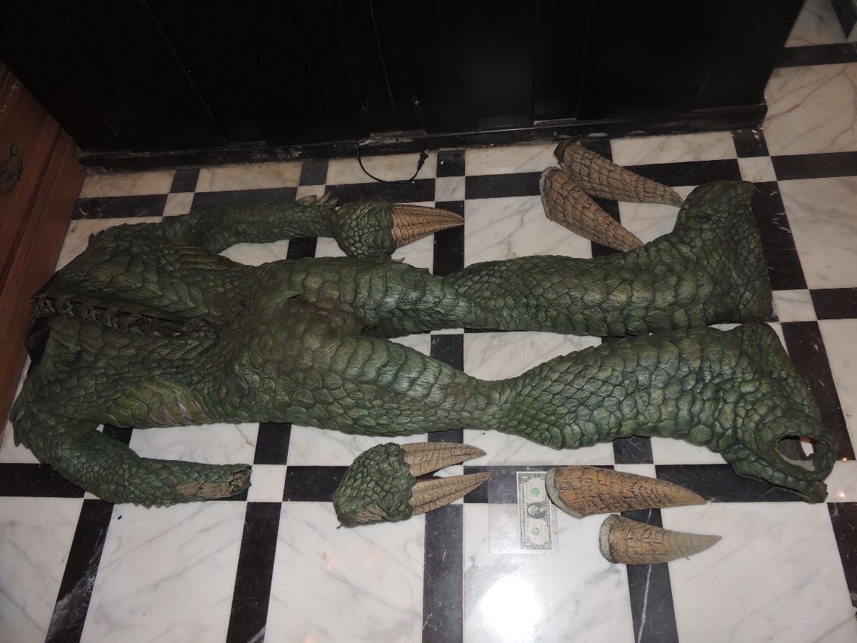Unfortunately this suit has no head/mask and consists of misc parts put together so it is not #'s matching. There are loose heads out there though! There is also a substituted toe claw. "The left foot has two longer claws".