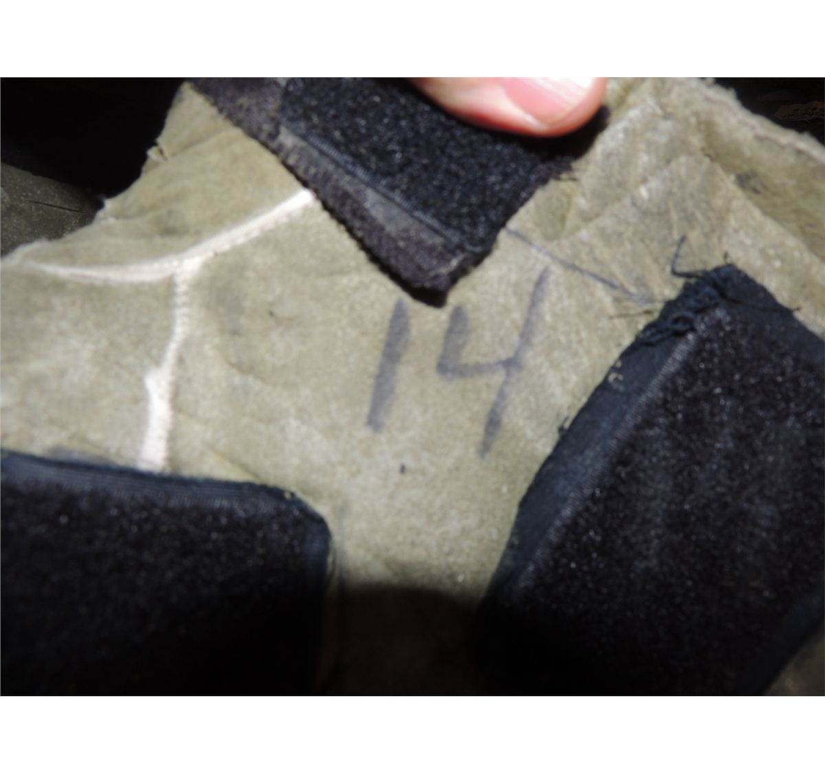 That means that this is the #14 body suit with the #14 mask, and matching #14 hands! The mask and hands are marked inside, and I cut the tag from the bag the body suit was in. The claws are not marked. Claws and eyes are made to remove.