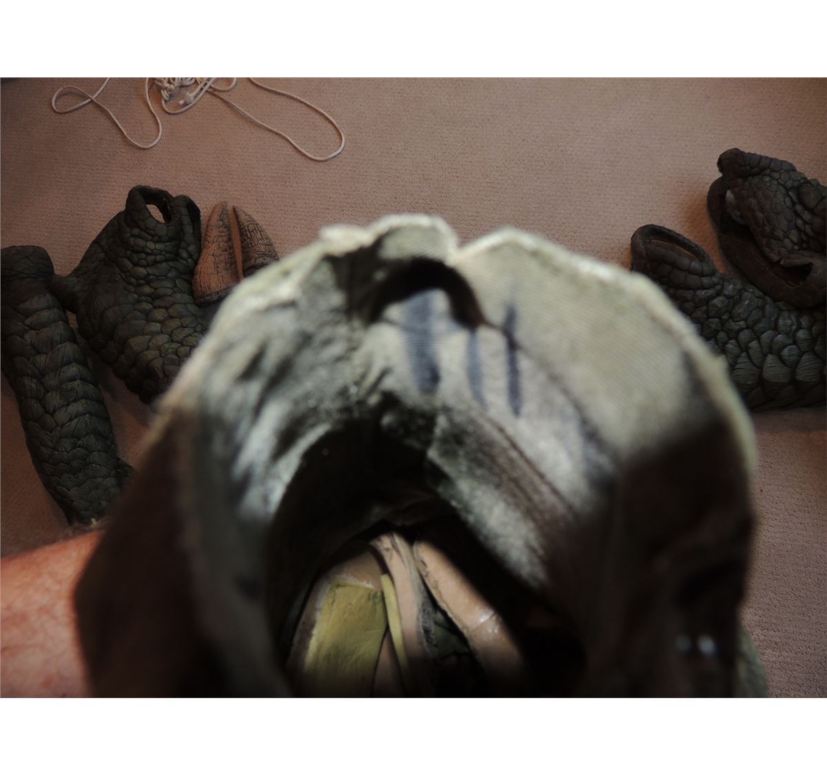 That means that this is the #14 body suit with the #14 mask, and matching #14 hands! The mask and hands are marked inside, and I cut the tag from the bag the body suit was in. The claws are not marked. Claws and eyes are made to remove.
