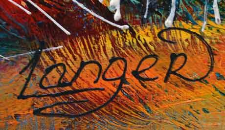 Artist: Yulia Langer - Title: Love Songs - Medium: Original Acrylic on Canvas - Signature: This one-of-a-kind work is hand-signed by the artist at the bottom of the image - Image Size: Approximately 20 inches x 24 inches - Unframed on Unstretched Canvas - Details: This work comes with a Certificate of Authenticity - Biography: Yulia Langer was born in Kharkiv, Ukraine in 1972. After studying Art in Skovoroda, Kharkiv National University, Yulia continued teaching Fine Arts for a number of years. In 2003 Yulia moved to Israel, settling near Tel Aviv, and began focusing on her passion - painting. - Yulia Langer's canvases are a fusion of story, form and color. Romance and intimacy are reoccurring themes in her paintings, while in the background the viewer will find motifs of surrealism and naivety along with a certain musical subtext. Texture plays an important role in Langer's art. Various techniques, such as collage, music scores, lace and crochet, relief work, metallic paints and golden leaves, along with an uninhibited use of strong colors, are part of Yulia creations. In her paintings one can feel the presence of Marc Chagall, one of the great masters of the 20th century, and of the late Theo Tobiasse. - Today, you can find Langer's paintings in top galleries, and distinguished, private collections throughout the world. -