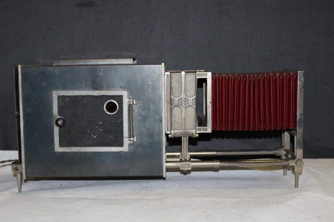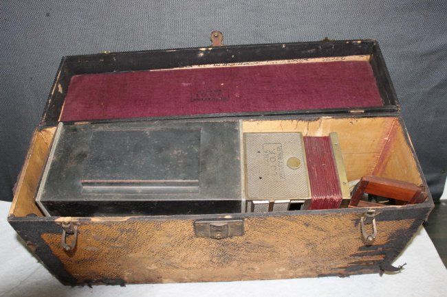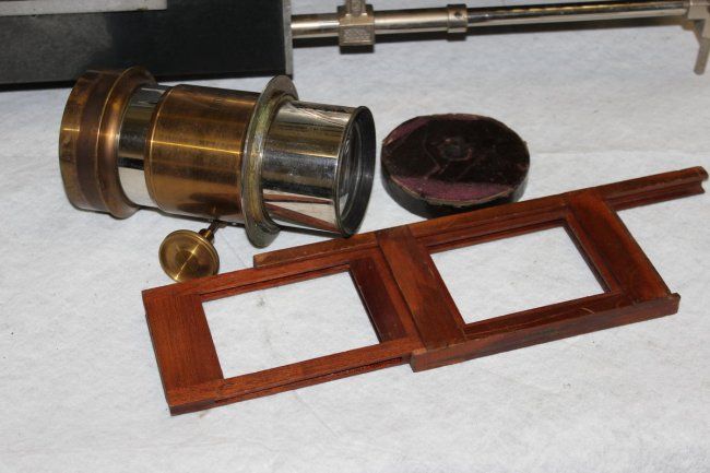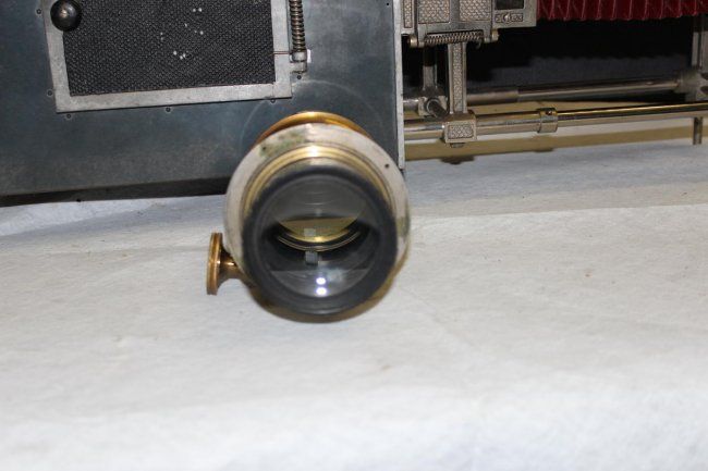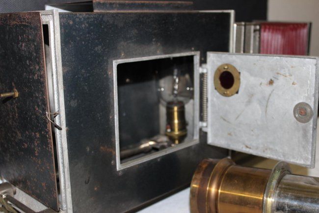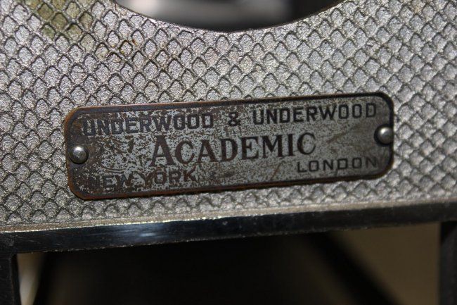 LANTERN PROJECTOR BY UNDERWOOD AND UNDERWOOD - ACADEMIC NEW YORK AND LONDON - IN ORIGINAL CASE - NICKEL CHROME WITH EXTENSION PLATE - NEAT - 26.5 X 12 X 6