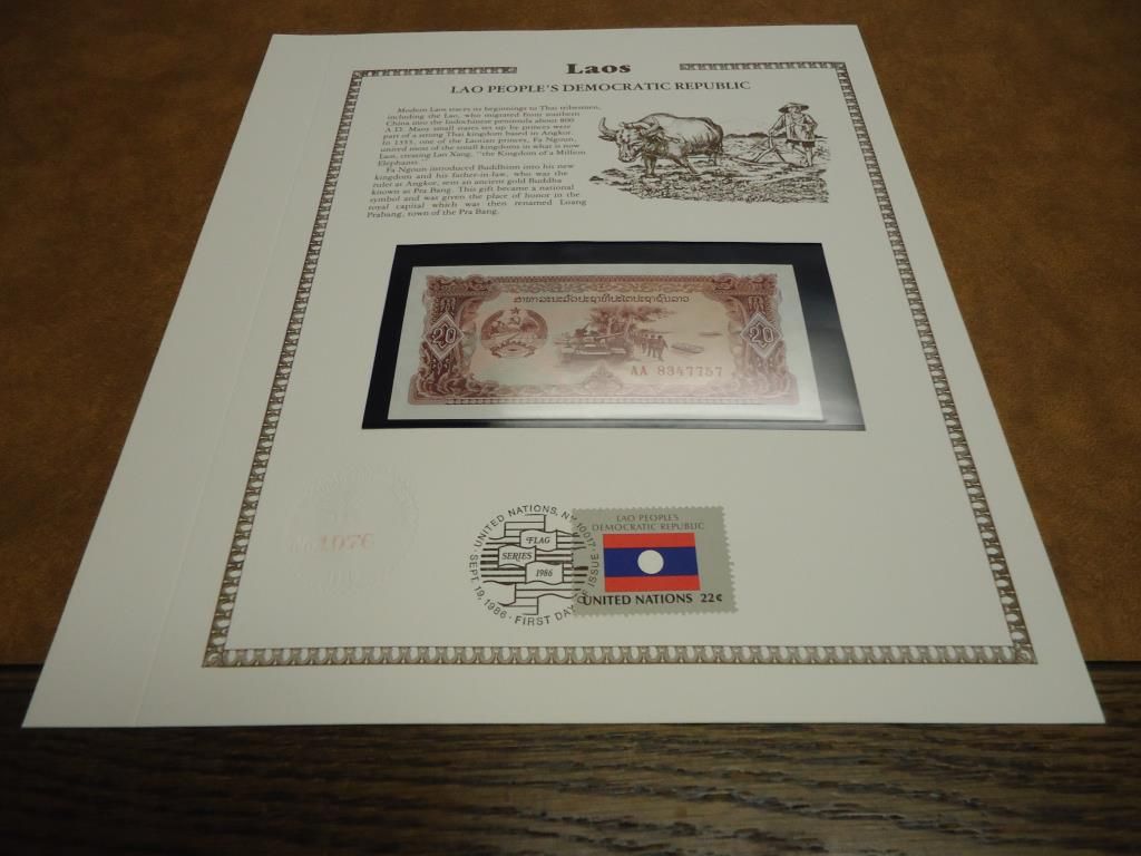 LAOS CRISP UNC CURRENCY & STAMP SET