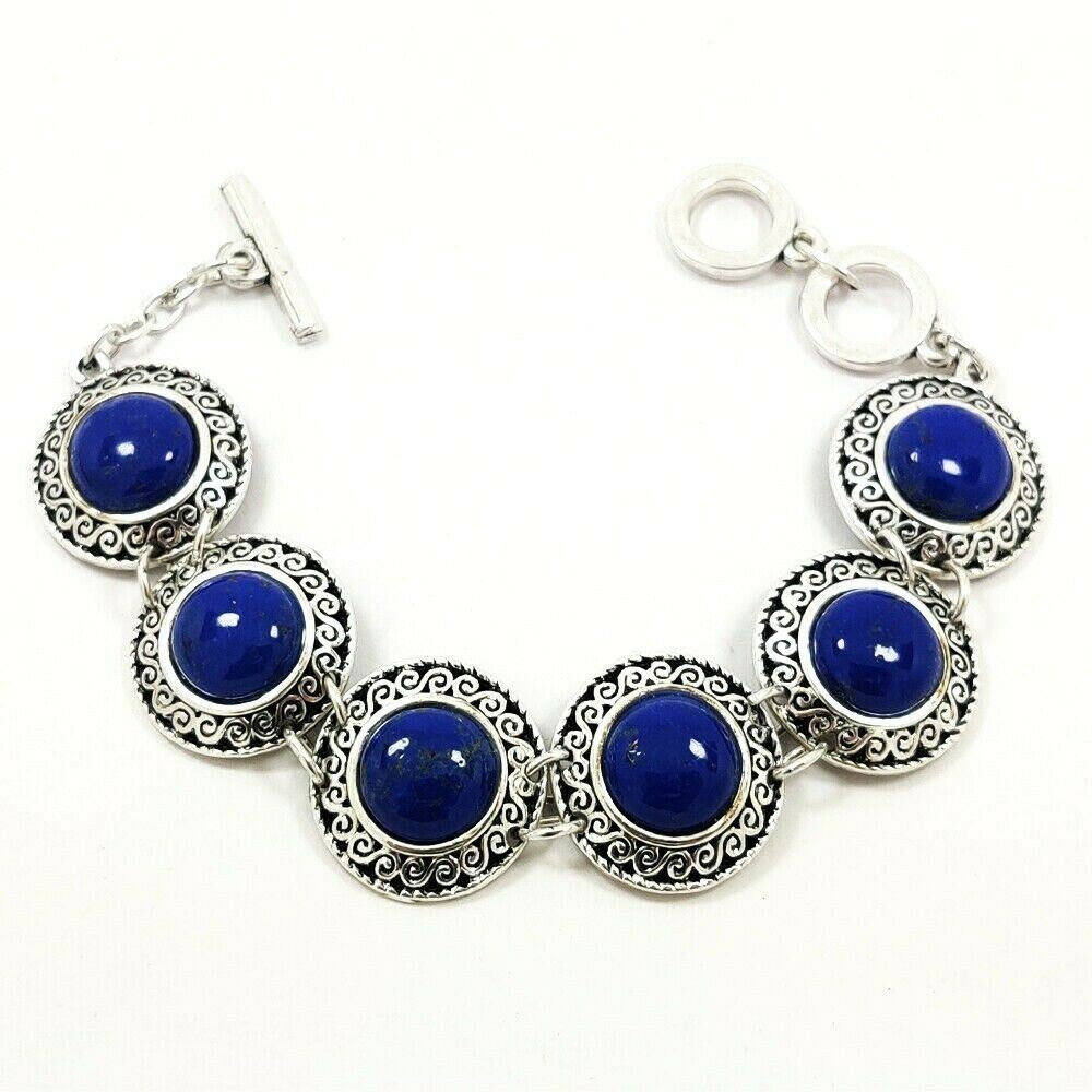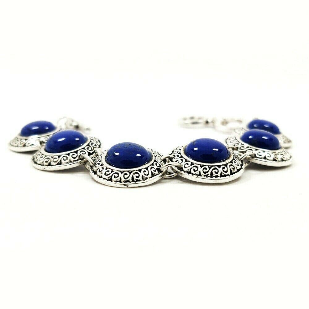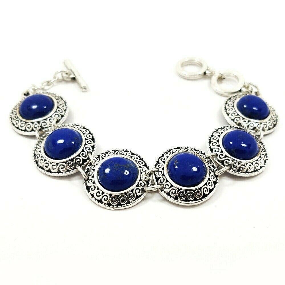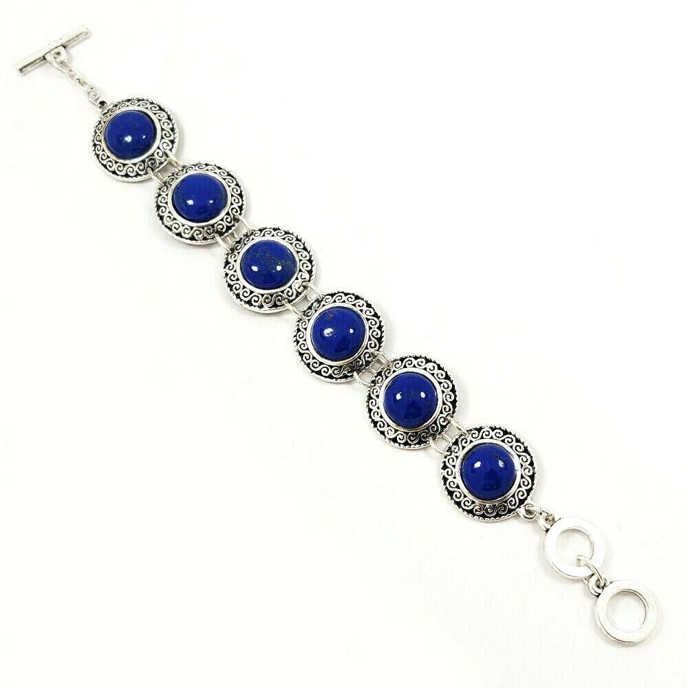 LAPIS LAZULI GEMSTONE SILVER PLATED BRACELET JEWELRY , Gemstone : Lapis Lazuli , Gemstone Shape : Round , Gemstone Size : 12x12mm Gemstone color : Blue , Base Metal : White Brass , Metal Purity : Silver Plated , Bracelet Size : 8 Inches (With Adjustable Links) , Bracelet Weight Weight : 29.00 Gram , Product Code : SGJBRA1013.