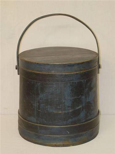 LARGE 14" 19TH CENT. PAINTED FIRKIN IN OLDER BLUE PAINT - WEAR & IMPERFECTIONS;