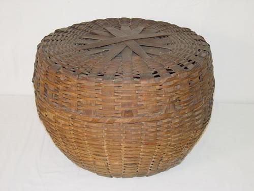 LARGE 17 1/2" 19TH CENT. COVERED SPLINT BASKET - OLD PATINA, BREAKS and LOSSES