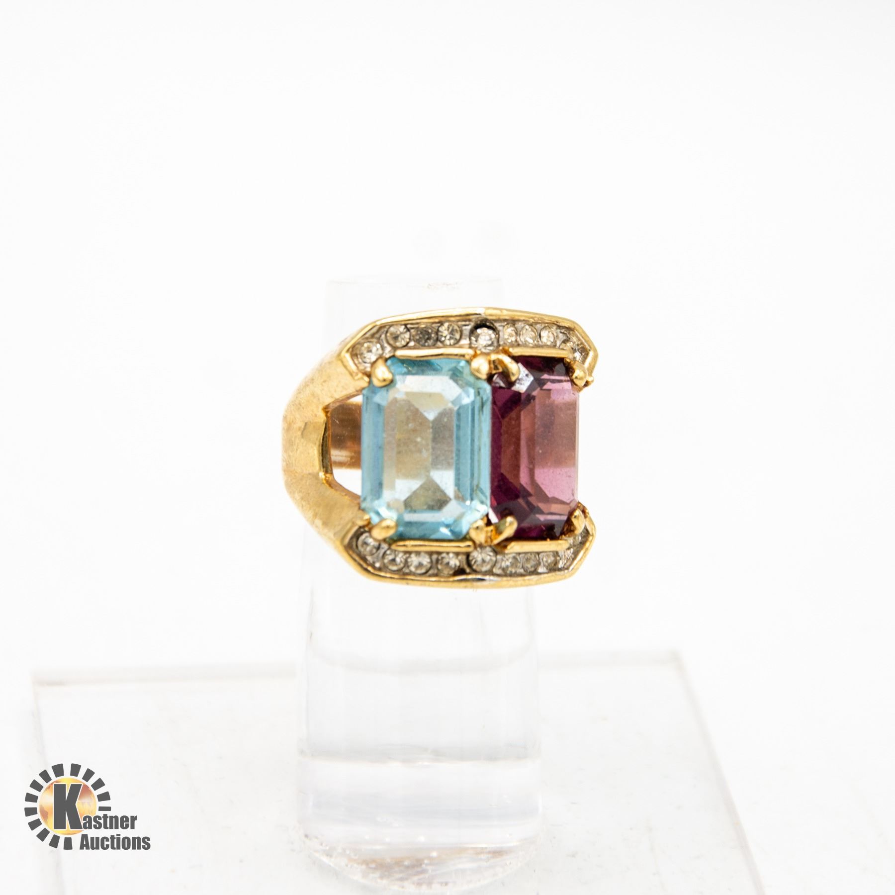 LARGE 18K GOLD PLATED RING WITH STONES SIZE 7