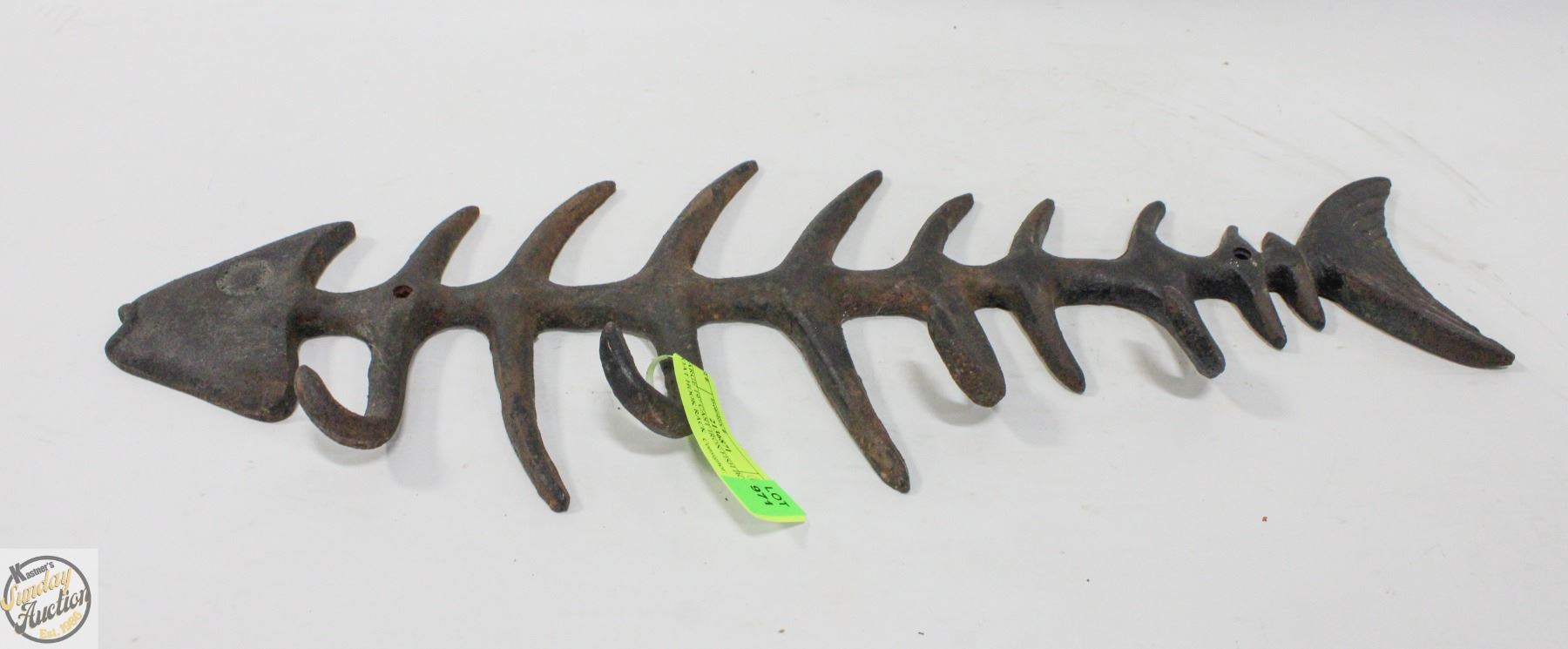 LARGE 19" CAST IRON FISH BONE COAT HOOK RACK