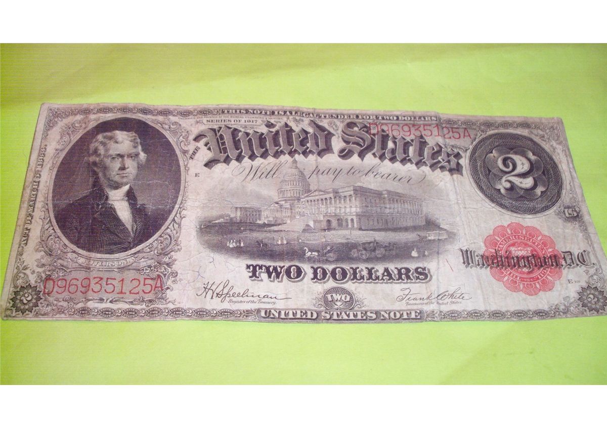 LARGE 1917 $2 DOLLAR BILL RED SEAL NOTE