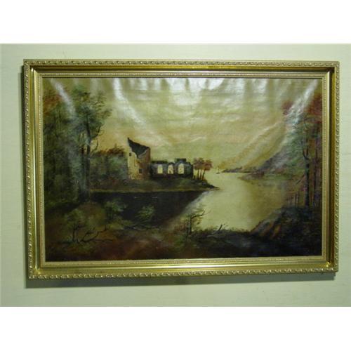 PAINTING AND THE FRAME ARE BOTH IN VERY GOOD CONDITION ( THE CANVAS COULD STAND TO BE TIGHTEND ) I COULD NOT FIND A SIGNATURE.