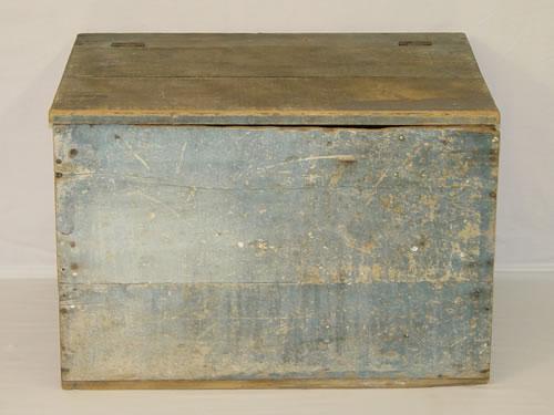 LARGE 19TH CENT. PINE UTILITY OR FIREWOOD STORAGE BOX IN BLUE PAINT - REPAIRS, IMPERFECTIONS