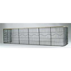 Lot # 572 LARGE 19TH CENTURY IRON AND BRASS FIREPLACE FENDER. Nice wire work D-shaped fender has brass top. SIZE: 15” h x 63” w x 15” d. CONDITION: Very good. 9-99316 (500-600)