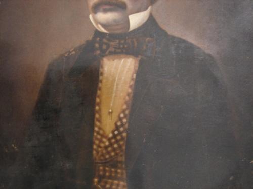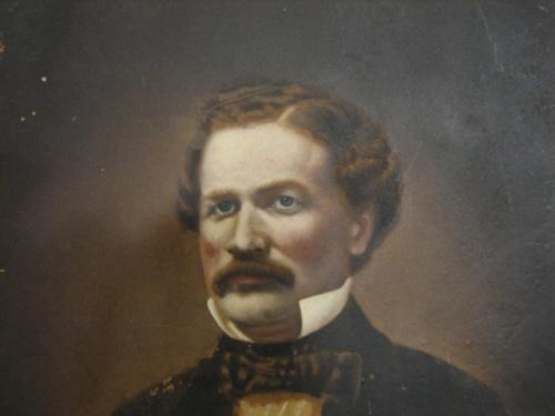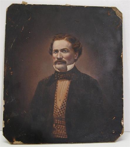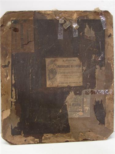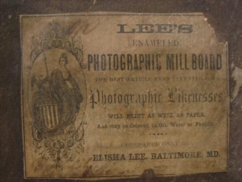 LARGE 19TH CENTURY PHOTOGRAPH OF GENTLEMAN. Depicts a seated gentleman. Marked with label on reverse “Lee’s/Enameled/Photographic Millboard/Photographic Likenesses/Elisha Lee, Baltimore, MD.” Photograph shows signs of wear and loss at corners. 12” x 14"