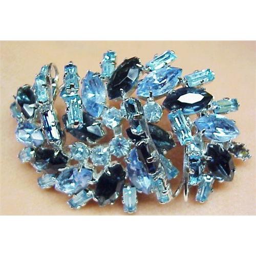 <tr><td>Title:LARGE 2 TONE BLUE RHINESTONE BROOCH</td></tr>