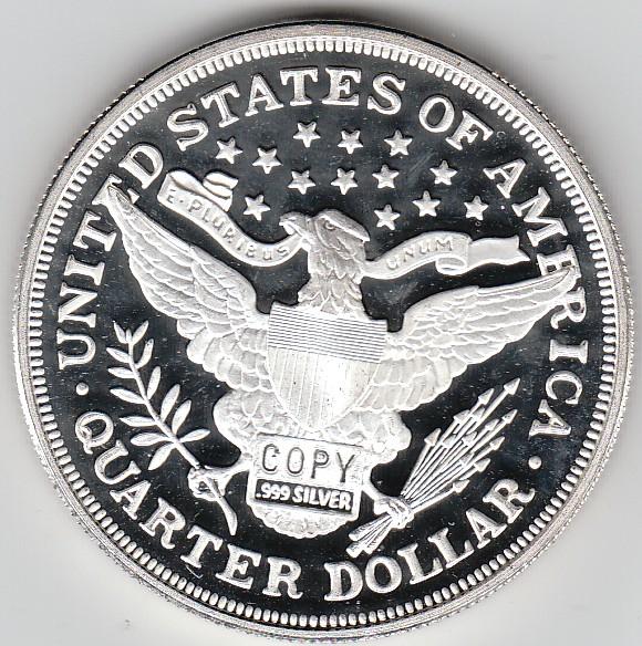 LARGE 2 TROY OUNCES OF SILVER .999 FINE BARBER