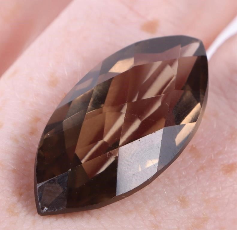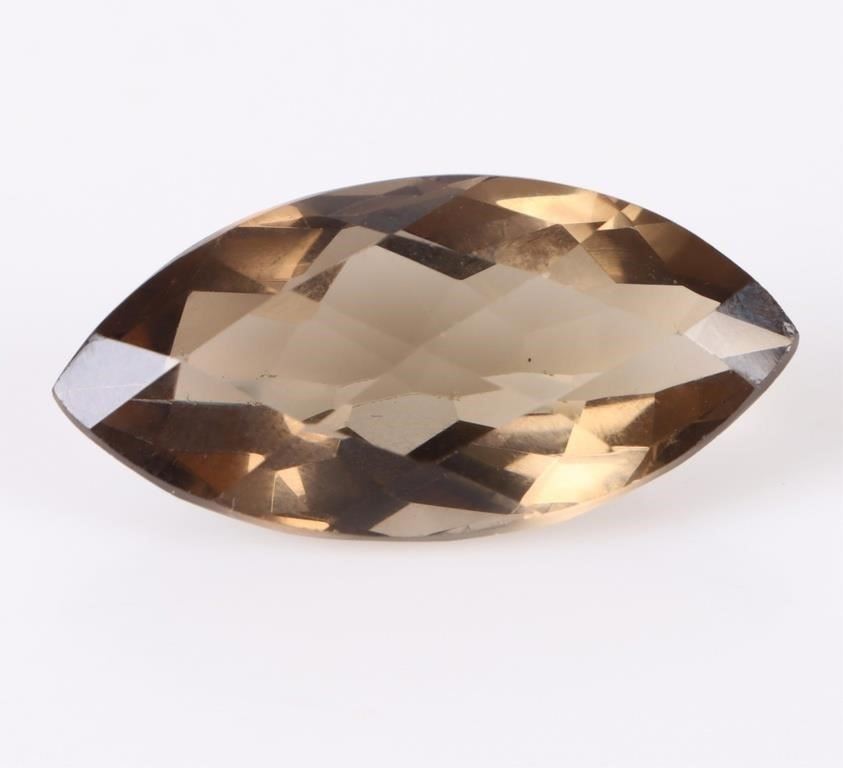 Large 33.0ct marquise smokey quartz topaz loose gemstone. Gemstone has been electronically tested and identified, tester does not distinguish between natural and lab grown.