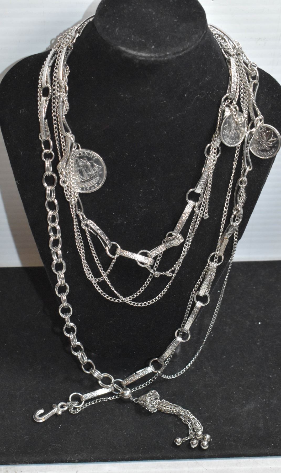 SILVER TONE WITH VINTAGE COINS ATTACHED.