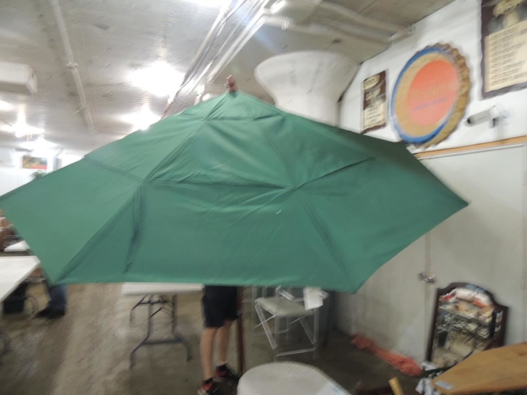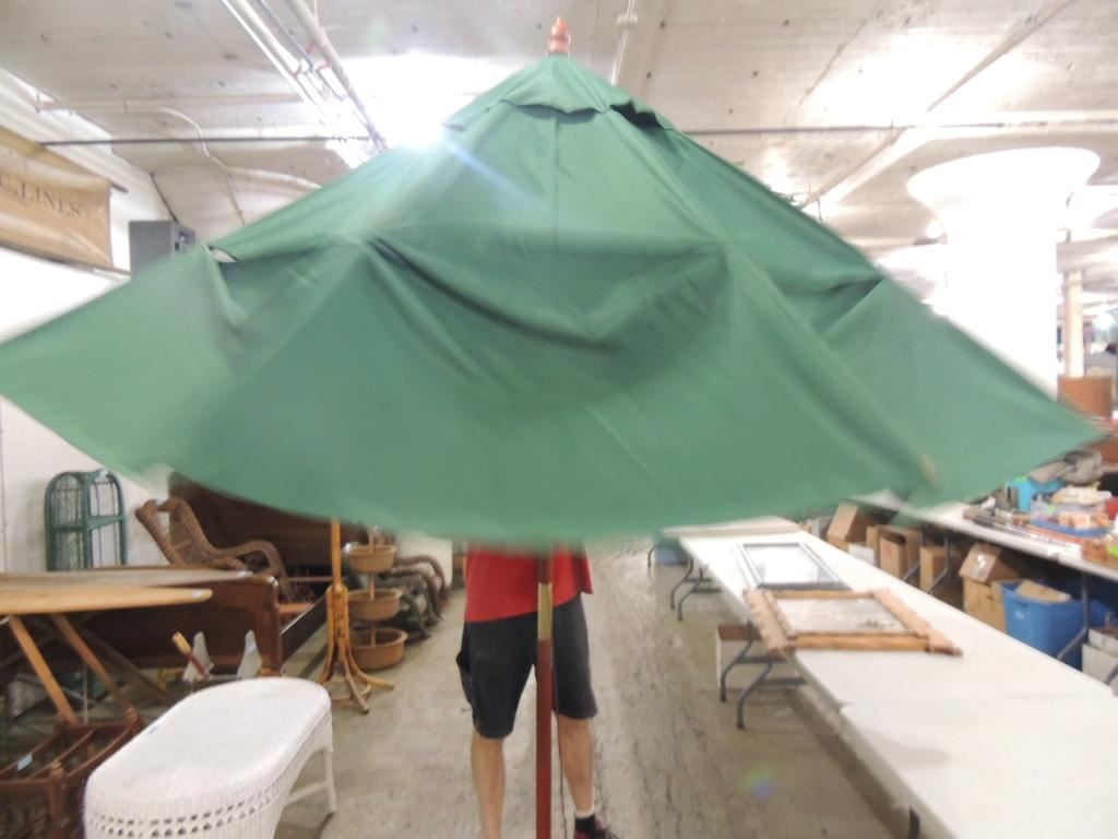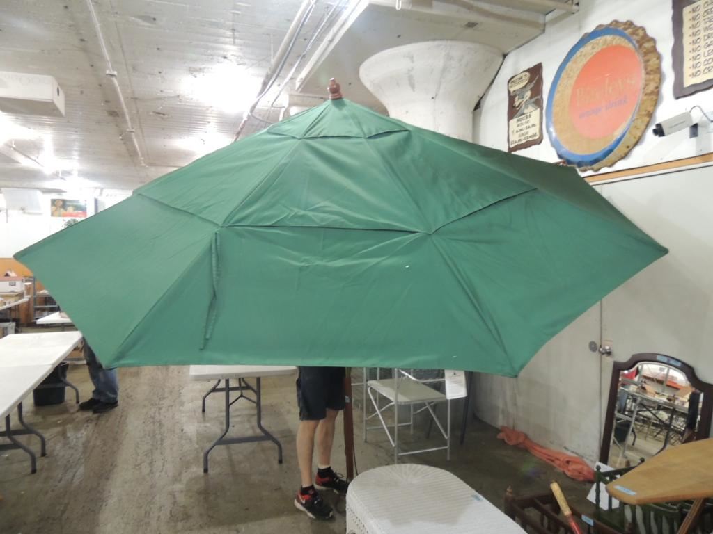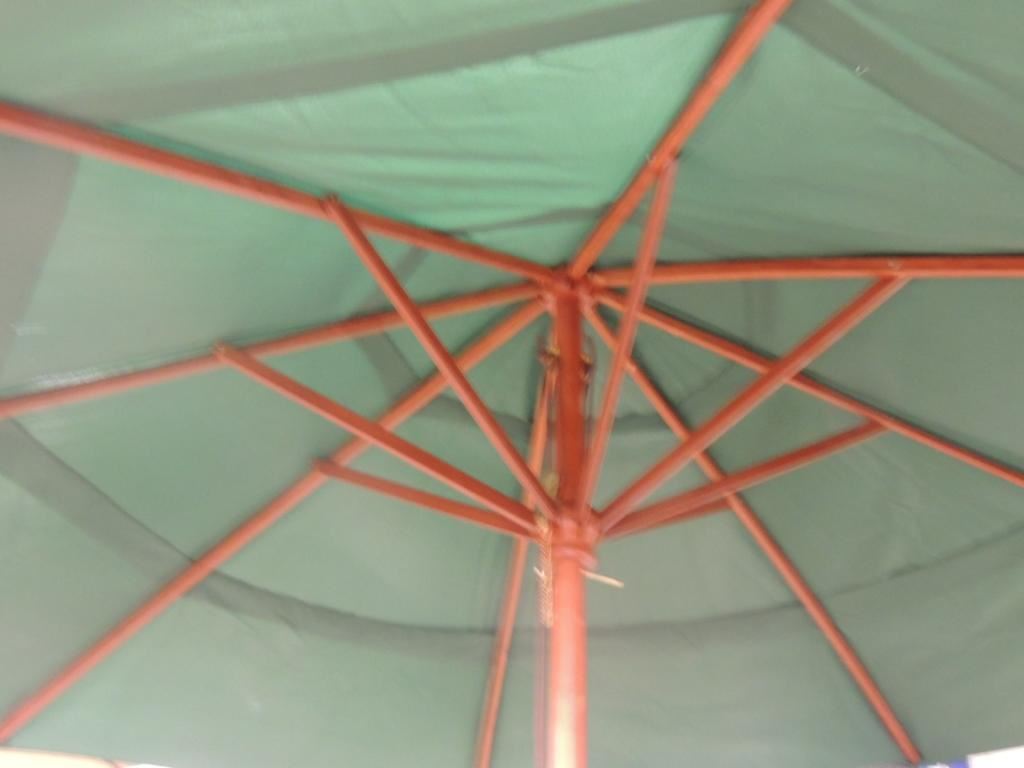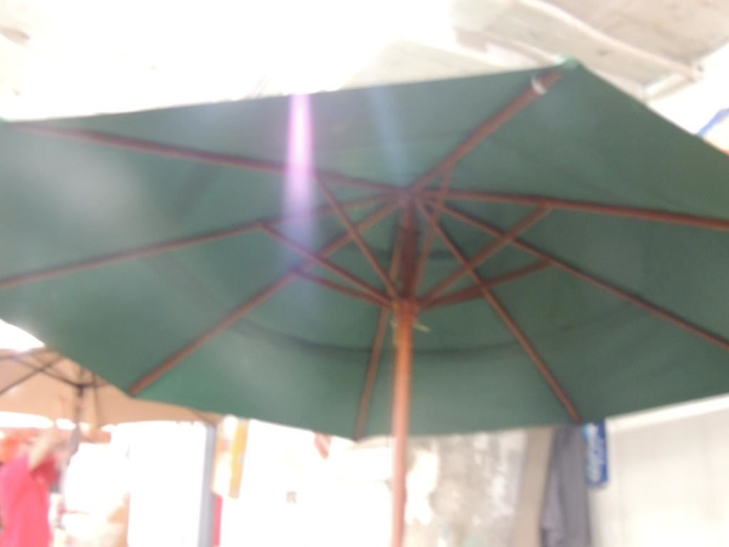 NEW PATIO UMBRELLA, WOODEN FRAME, LARGE PATIO UMBRELLA DECORATIVE SHADE, PATIO TABLE UMBRELLA AS SHOWN SEE PHOTO FOR MORE DETAILS.
