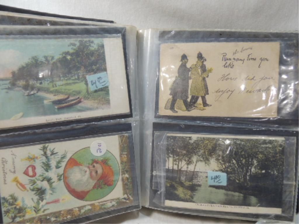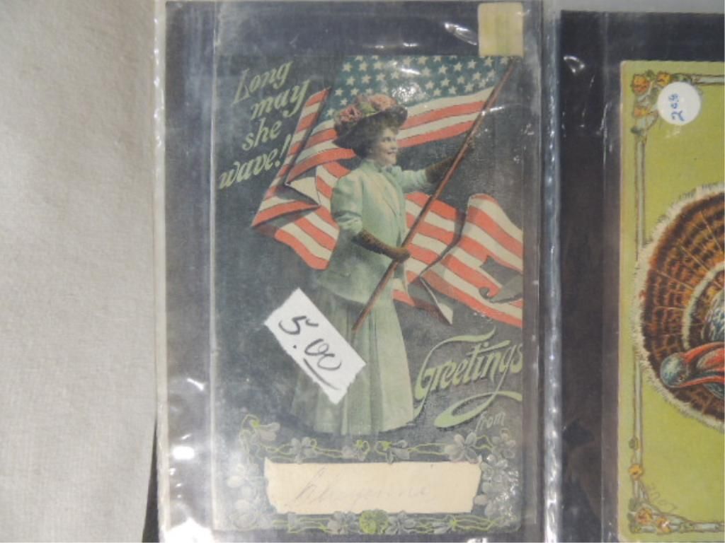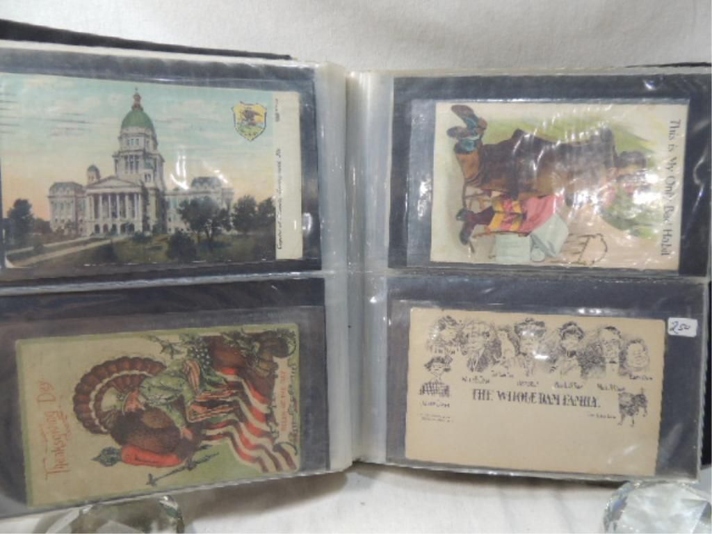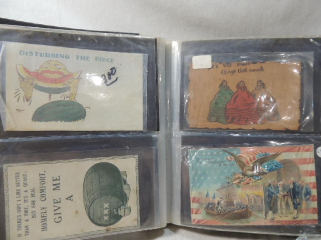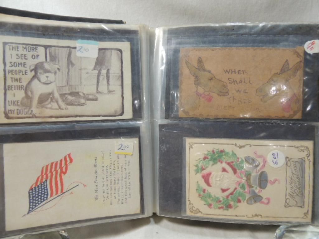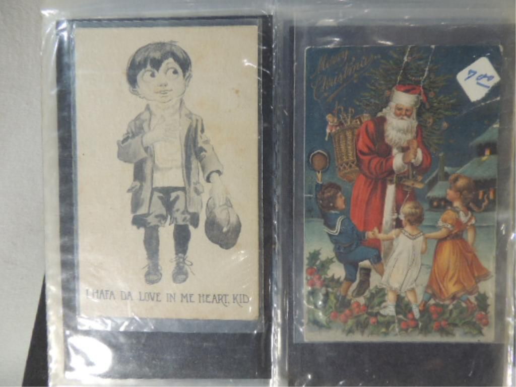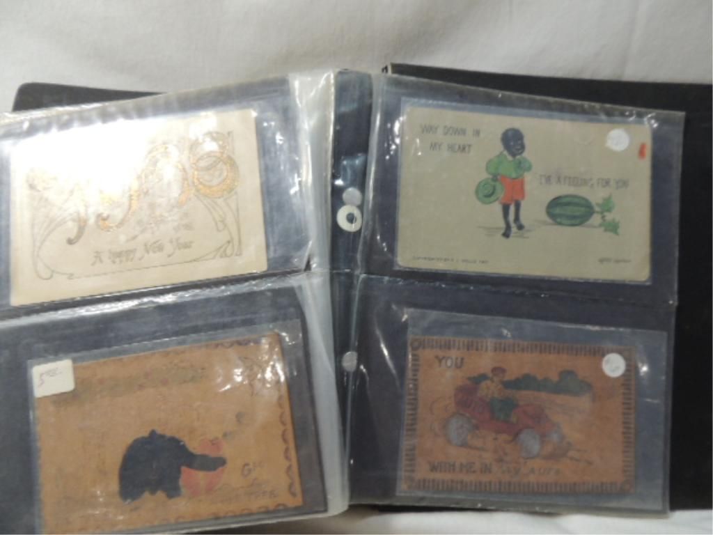 AMAZING COLLECTION OF VINTAGE ANTIQUE POSTCARDS. 1900'S BLACK SAMBO. COLORIZED, MILITARY, TRAVEL. HOLIDAY. PRESIDENTIAL. BABY. CARTOON. LEATHER.