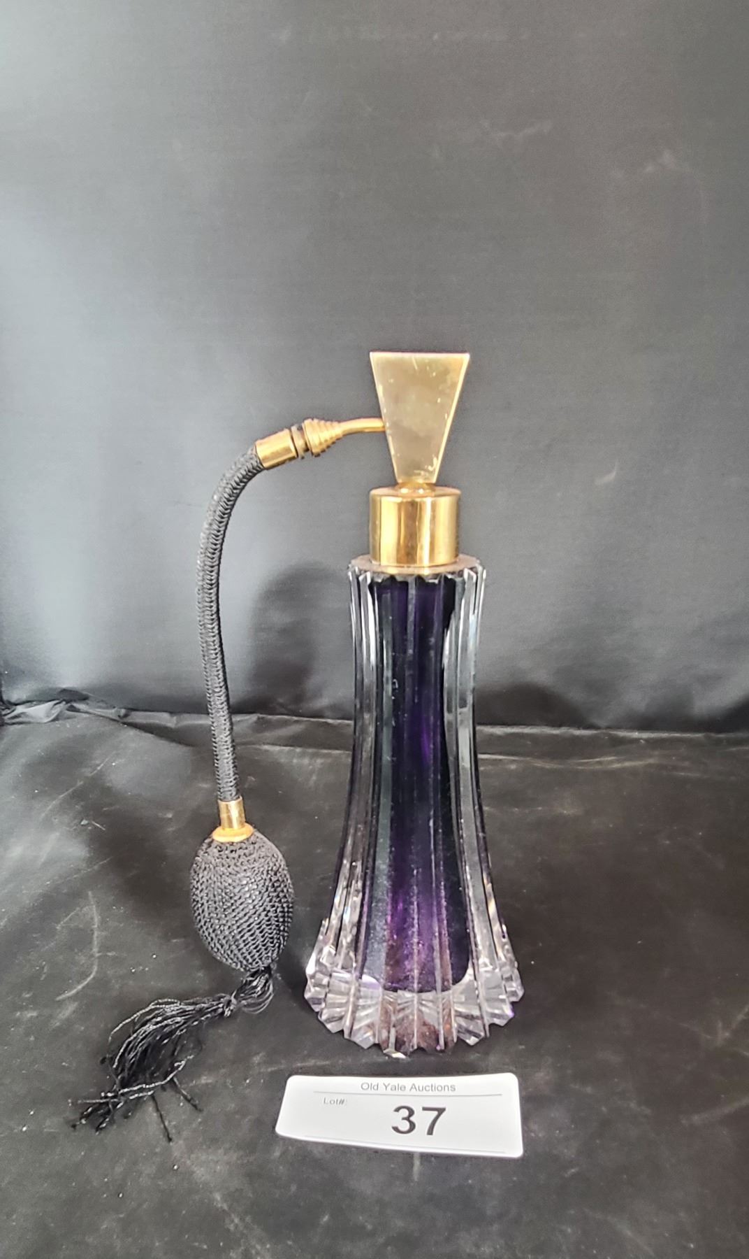 LARGE AMETHYST ART GLASS PERFUME BOTTLE W/ATOMIZER