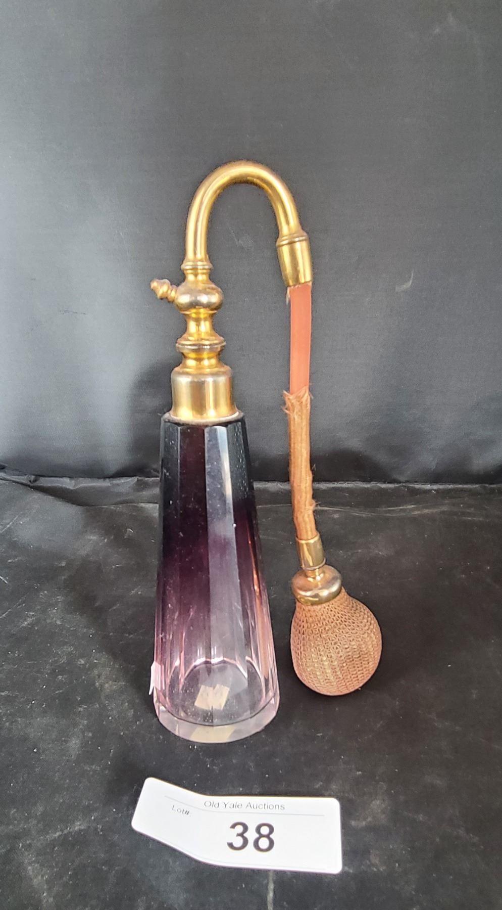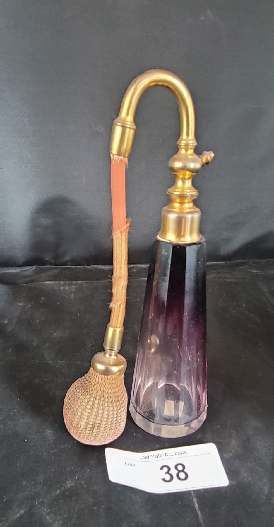 LARGE AMETHYST ART GLASS PERFUME BOTTLE W/ATOMIZER