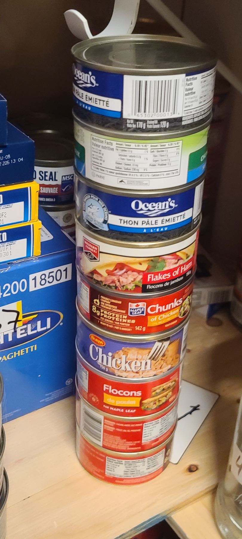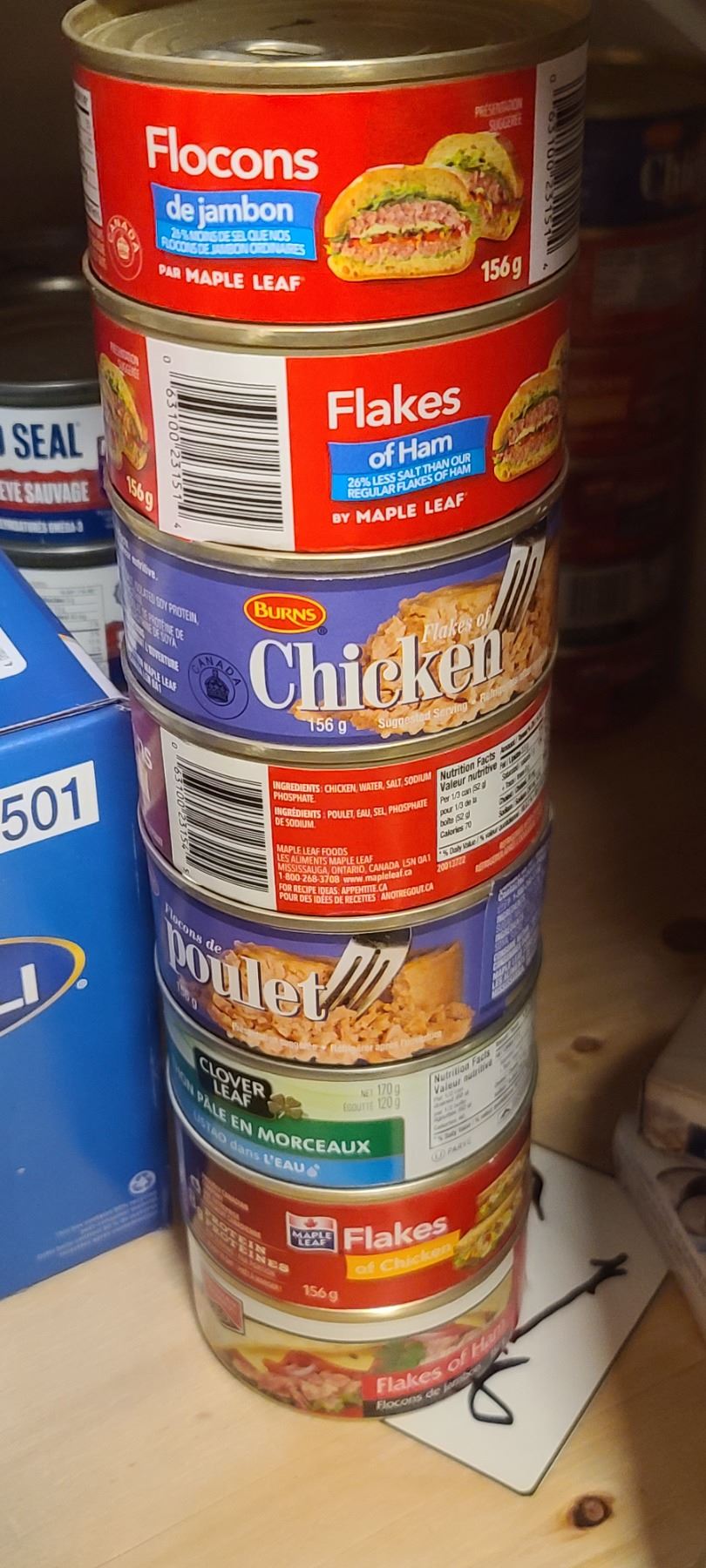 LARGE AMOUNT OF CANNED TUNA, SALMON, TURKEY, OYSTERS AND LUNCH MEATS