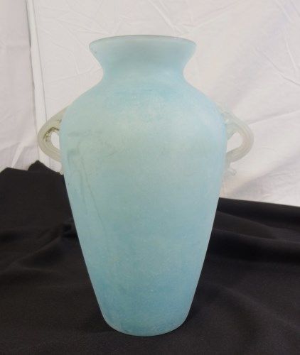 LARGE AND HEAVY GREEK STYLE GLASS VASE WITH APPLIED HANDLES. Est Value $15.00-25.00