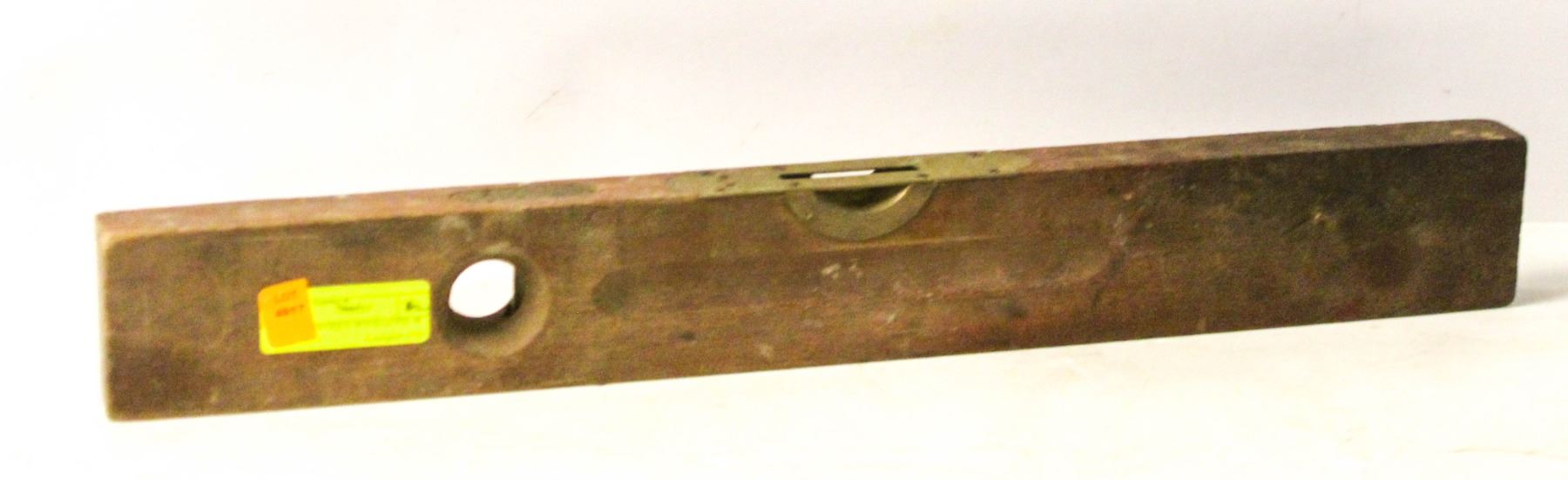 LARGE ANTIQUE WOOD LEVEL W BRASS