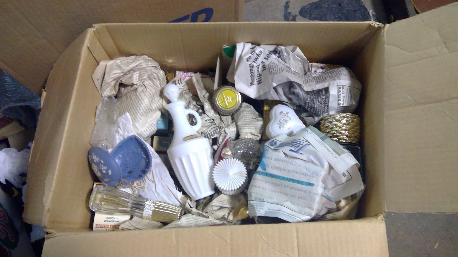 LARGE APPLE BOX OF AVON ITEMS
