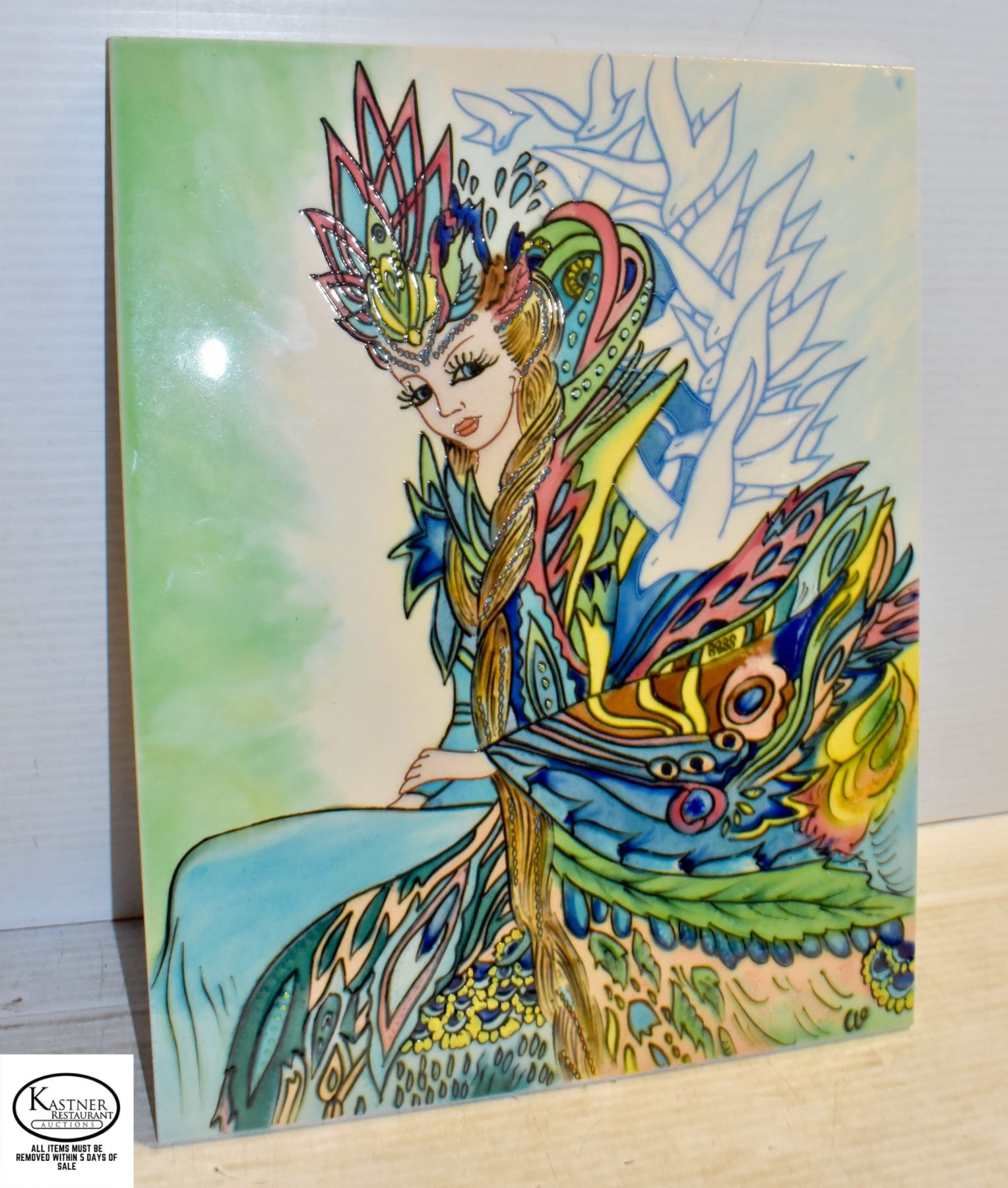 LARGE ARTISTIC TILE OF PEACOCK FAIRY