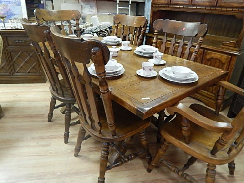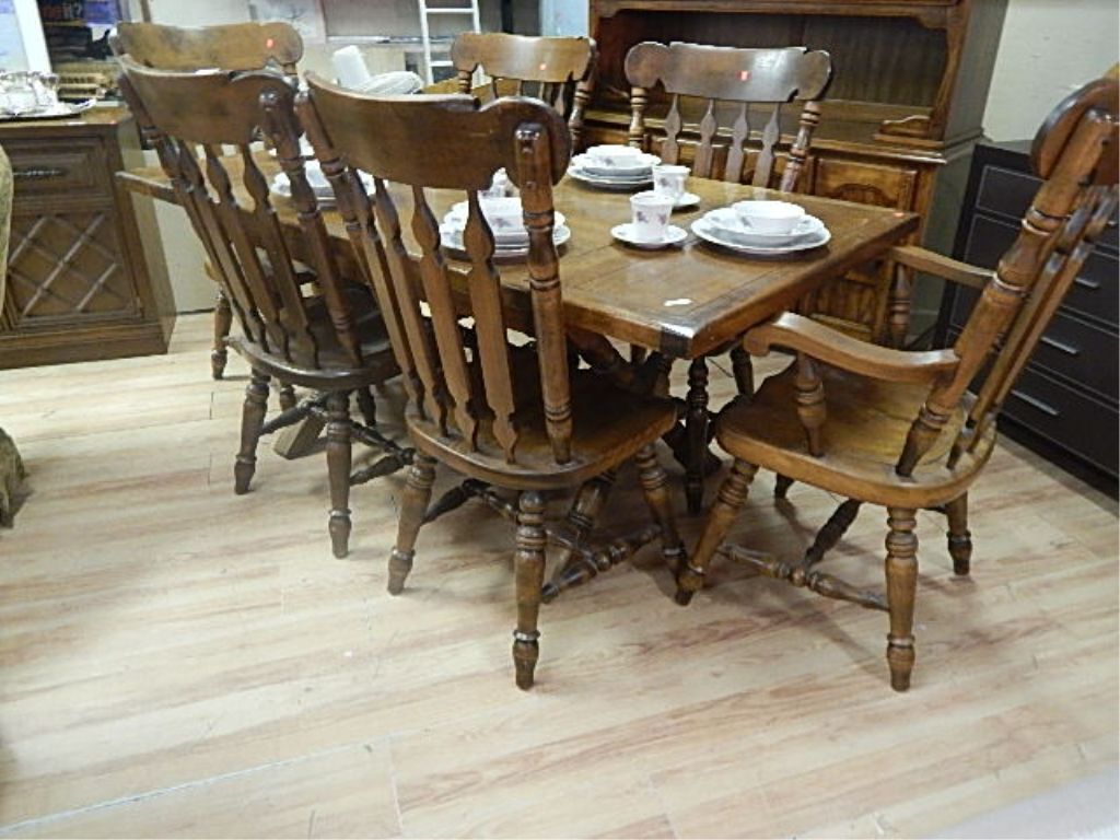 LARGE ARTS & CRAFT DINING TBLE & 2 LEAFS & 6 CHAIR