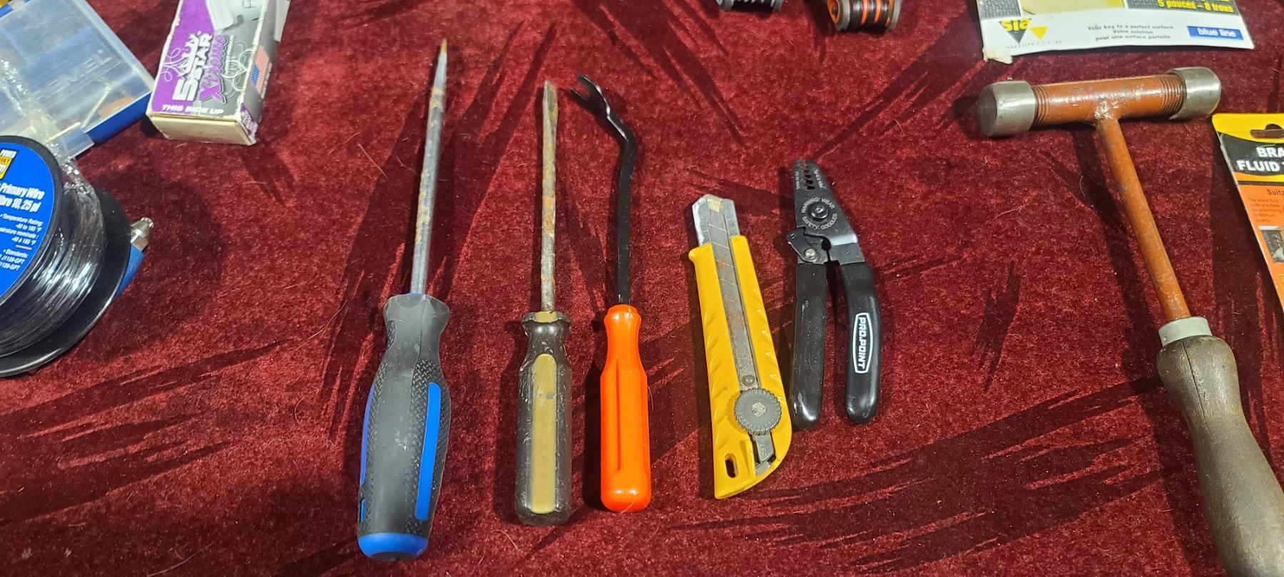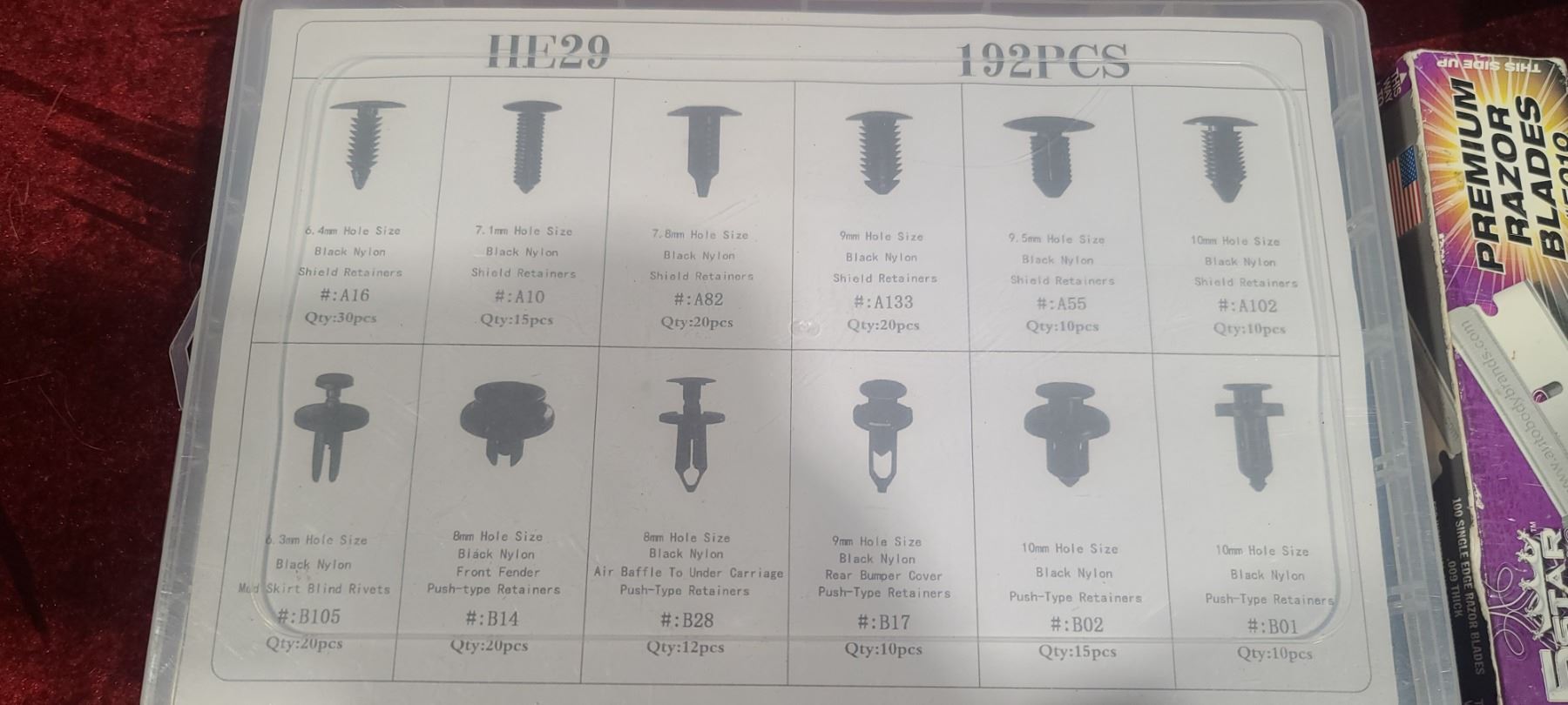 LARGE ASSORTED LOT: SHIELD RETAINERS, DRIVER BITS, ALLEN WRENCHES, RAZOR BLADES AND OTHER