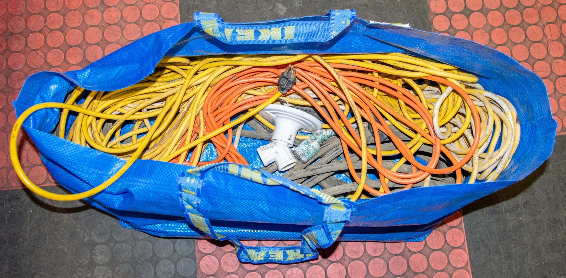 LARGE BAG OF ASSORTED EXTENSION CORDS