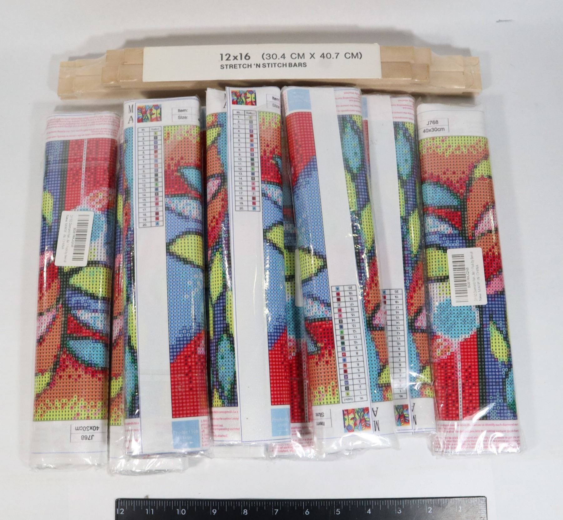 LARGE BAG OF DIAMOND ART KITS AND 12 X 16" STRETCH