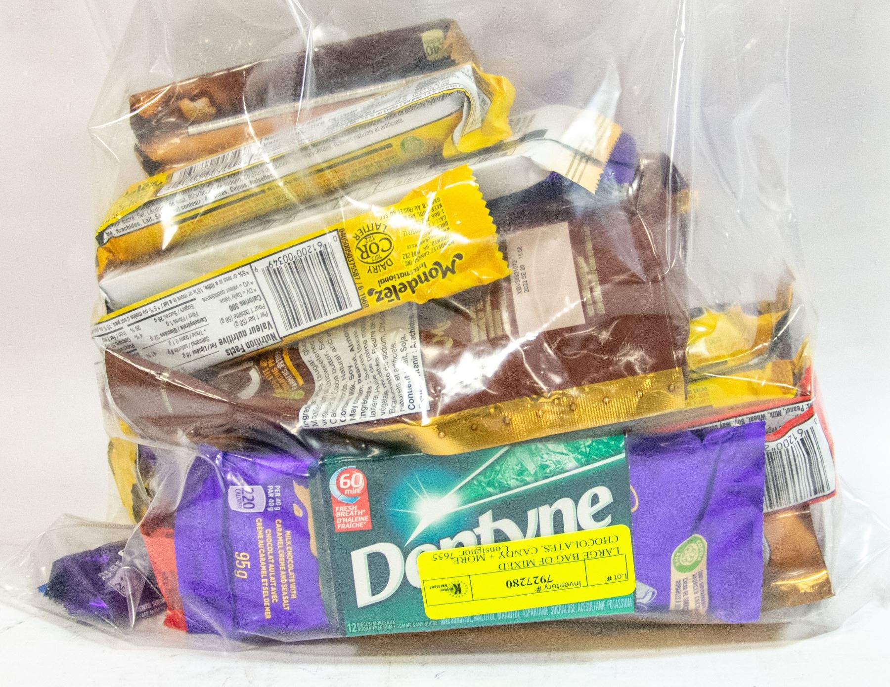 FULL; SIZED BARS, BAGS, AND MORE *SOME MAY BE JUST PAST THE BEST BEFORE DATE* **ALL ITEMS MUST BE REMOVED BY 5PM SATURDAY, JANUARY 28TH 2023. **ALL REMAINING ITEMS WILL BE SUBJECT TO A $6.00 PER DAY STORAGE CHARGE. ANY ITEMS REMAINING AFTER MONDAY, FEBRUARY 13TH, 2023 WILL BE CONSIDERED FORFEITED. NO REFUNDS WILL BE ISSUED FOR FORFEITED ITEMS. TO SCHEDULE A PICK UP APPOINTMENT CLICK HERE
